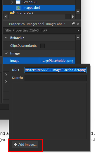 First things first, open your Hub game in Roblox Studio. Once Roblox Studio is open, create a new ImageLabel.
